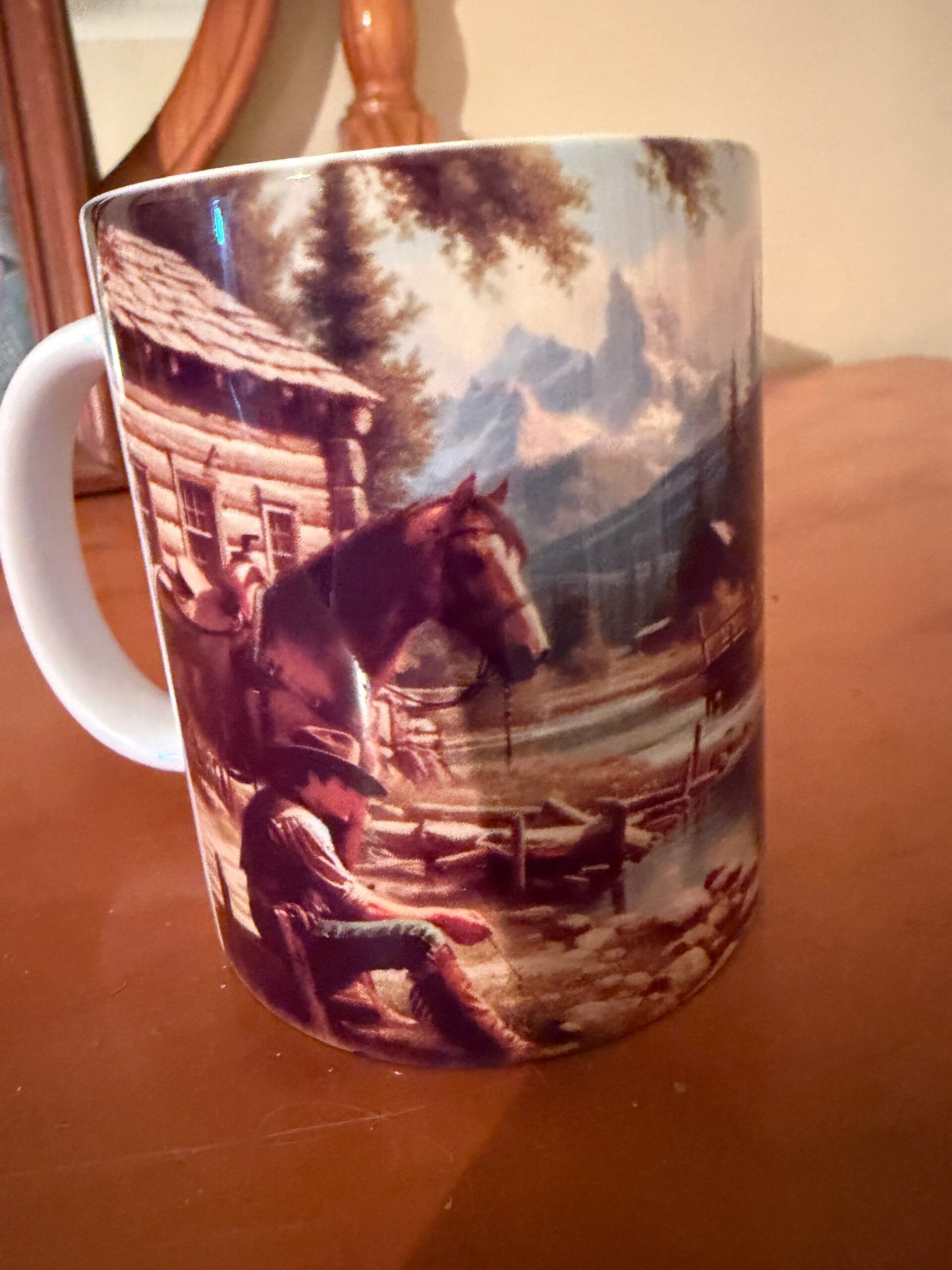 Beautiful unique 11oz western cowboy and horse coffee mug